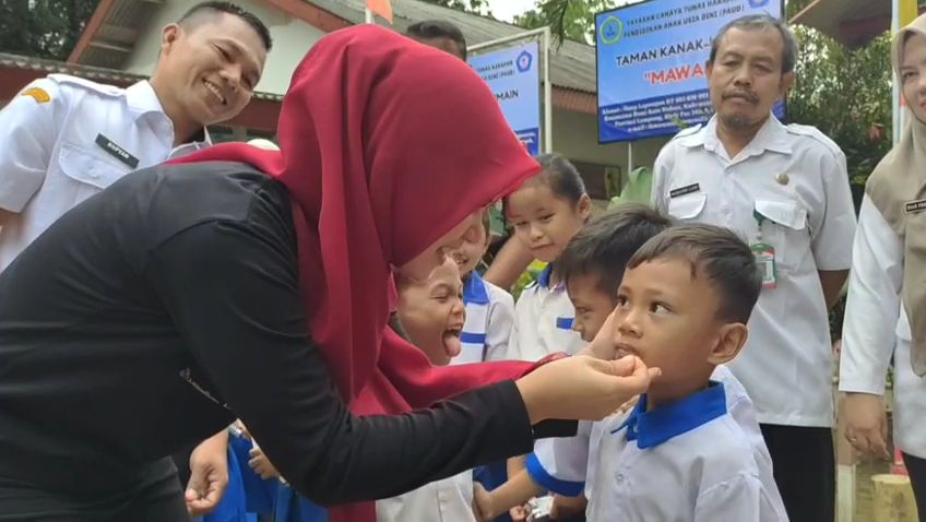Tidak hanya itu, Pokja PAUD Lamteng juga memberikan vitamin A, susu sehat, serta mengajarkan secara praktek aktivitas fisik sikat gigi serta Pola Hidup Bersih dan Sehat (PHBS).