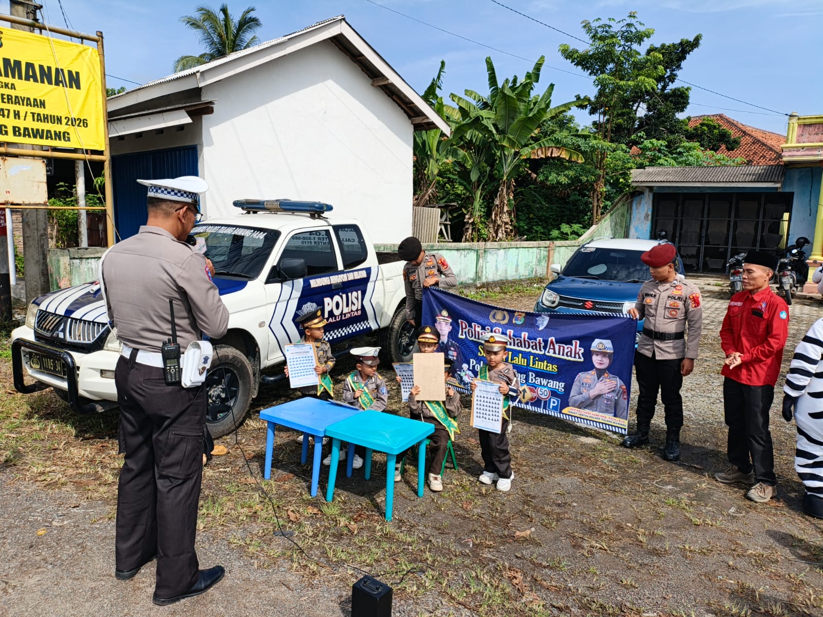 INTAILAMPUNG.COM, TULANG BAWANG— 17 MARET 2026 Unit Keselamatan Lalu Lintas (Kamsel) Satuan Lalu Lintas (Sat Lantas) Polres Tulang Bawang menggelar kegiatan Polisi Sahabat Anak (POLSANA) yang penuh semangat pada Senin (16/03/2026) pukul 08.30 WIB bertempat di Pos Pengamanan Menggala. Kegiatan ini diikuti oleh 10 siswa TK ARROYAN Menggala sebagai “Reporter Cilik” serta didampingi oleh 5 guru.