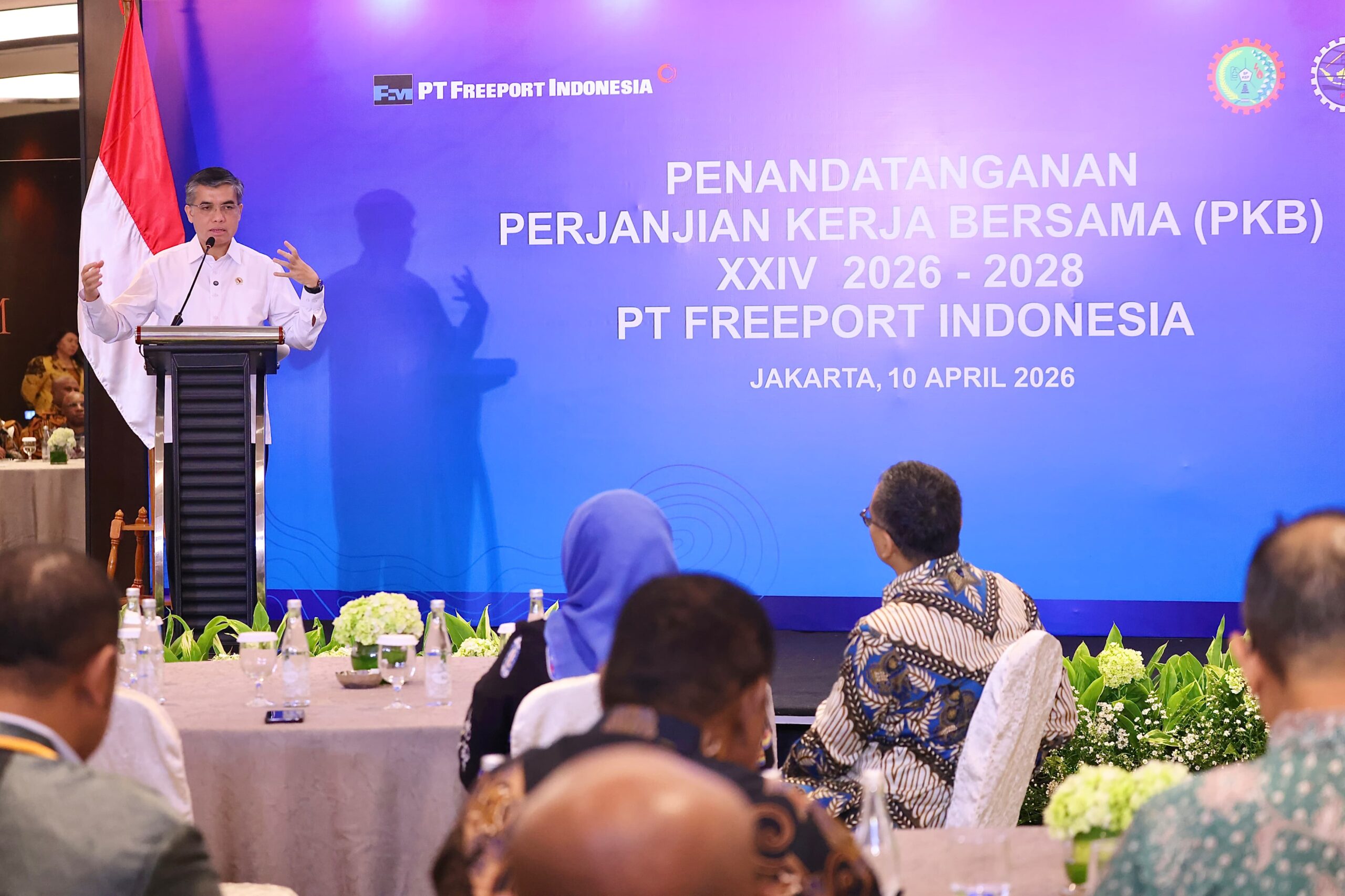 Pernyataan tersebut disampaikan Menaker Yassierli, saat menghadiri penandatanganan Perjanjian Kerja Bersama ke-XXIV periode 2026–2028 antara manajemen PT Freeport Indonesia (PTFI) dan tiga serikat pekerja di Jakarta, Jumat (10/4/2026).