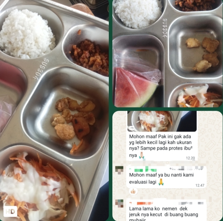 “Makin lama makin gak jelas pak program MBG ini. Apa gak ada yang lebih kecil lagi dari menu ini, sampe pada protes ibu-ibu,” keluhnya dalam grub WhatsApp.